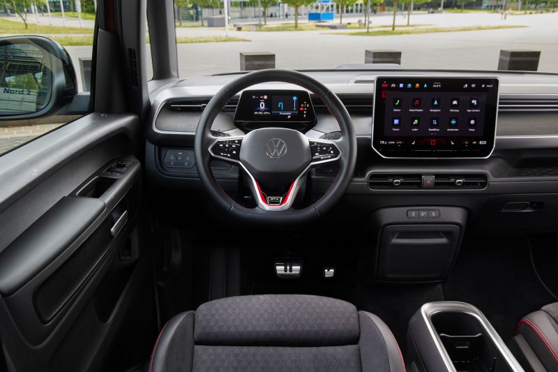 Innen verbindet der GTX sportliche Details mit klassischem Bulli-Gefühl. Die speziellen GTX-Sitze bieten guten Halt, bleiben aber langstreckentauglich. Das neue Infotainmentsystem mit 12,9-Zoll-Touchscreen überzeugt mit schneller Reaktion und klarer Menüführung. Die nun beleuchtete Touchleiste für Temperatur und Lautstärke ist ein kleines, aber entscheidendes Upgrade im Alltag.